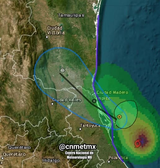 📍 Ubicación actual: A 15 km al este-noreste de Cabo Rojo, Veracruz, y a 100 km al sureste de Tampico, Tamaulipas.