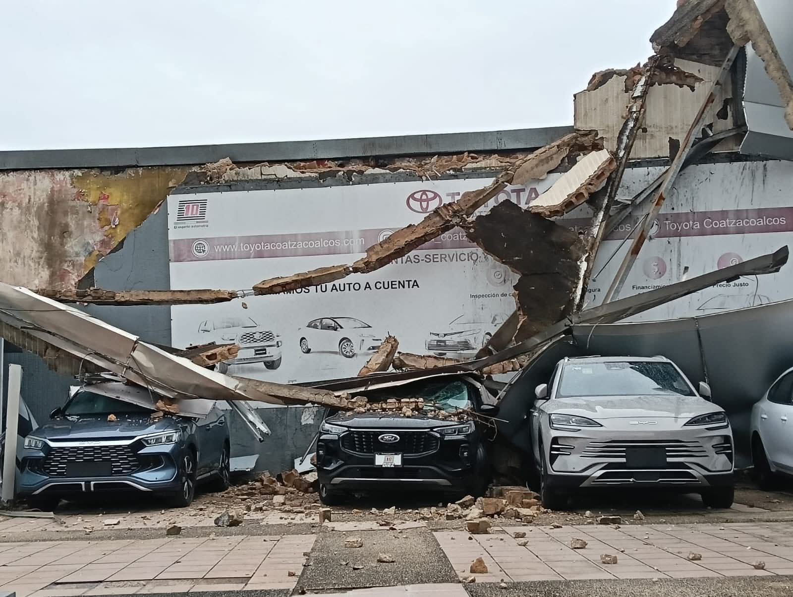 Diversas agencias automotrices reportaron }daños en su infraestructura y se reportan dos personas lesionadas.