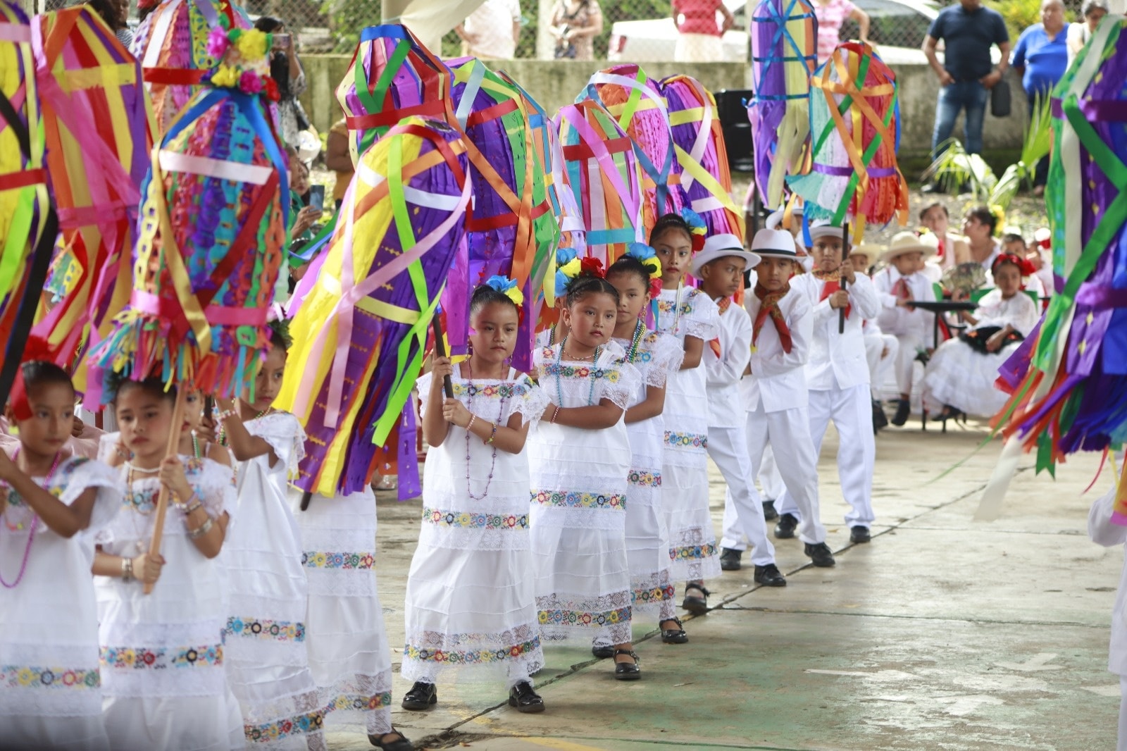 En el acto se realizó el cambio de escolta, además de vistosos bailables con estampas regionales, la entrega de reconocimientos a los mejores promedios y participantes en las olimpiadas del conocimiento, así como los diplomas a los alumnos de sexto año que dejan la primaria para dar el paso a la secundaria.