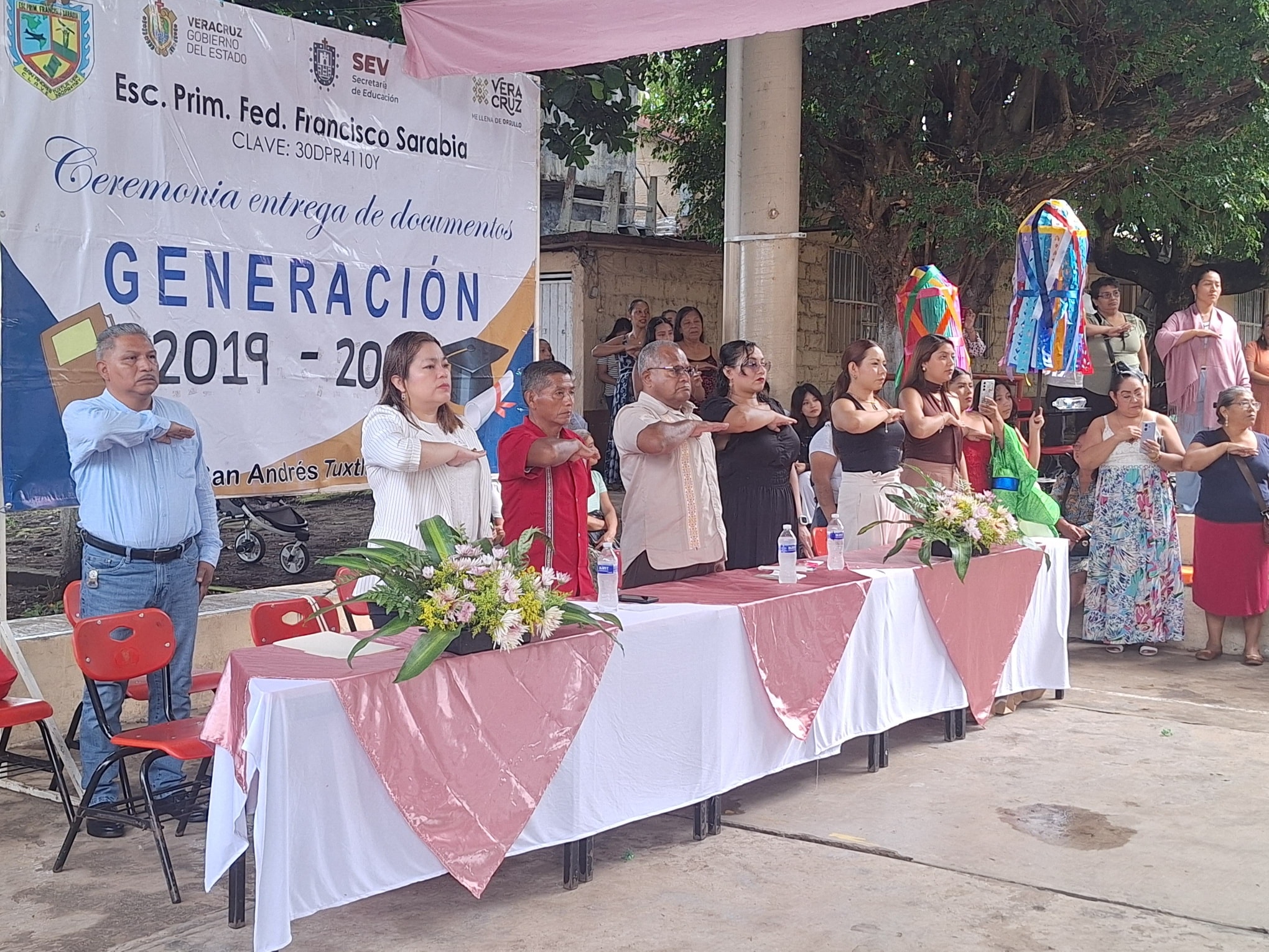 En el acto estuvieron presentes además, el director de la escuela, el profesor Julio Chontal Perea; el ciudadano Carlos Chiguil Catemaxca, Agente Municipal de la Colonia Emiliano Zapata; las madrinas de la Generación, la licenciada Paulina del Rocío Román Trujillo y la ingeniero Yatzareth Ortega Escalera, quienes acudieron en representación de director del Instituto Tecnológico Superior de San Andrés Tuxtla, el licenciado Roberto Rojas González; así como el Supervisor de la Zona Escolar 020, el profesor Francisco Vela salmerón, Carolina Sinta Figueroa, Auxiliar de Supervisión y el ciudadano Víctor Xolo Pólito, Comisariado Ejidal de la colonia Emiliano Zapata.