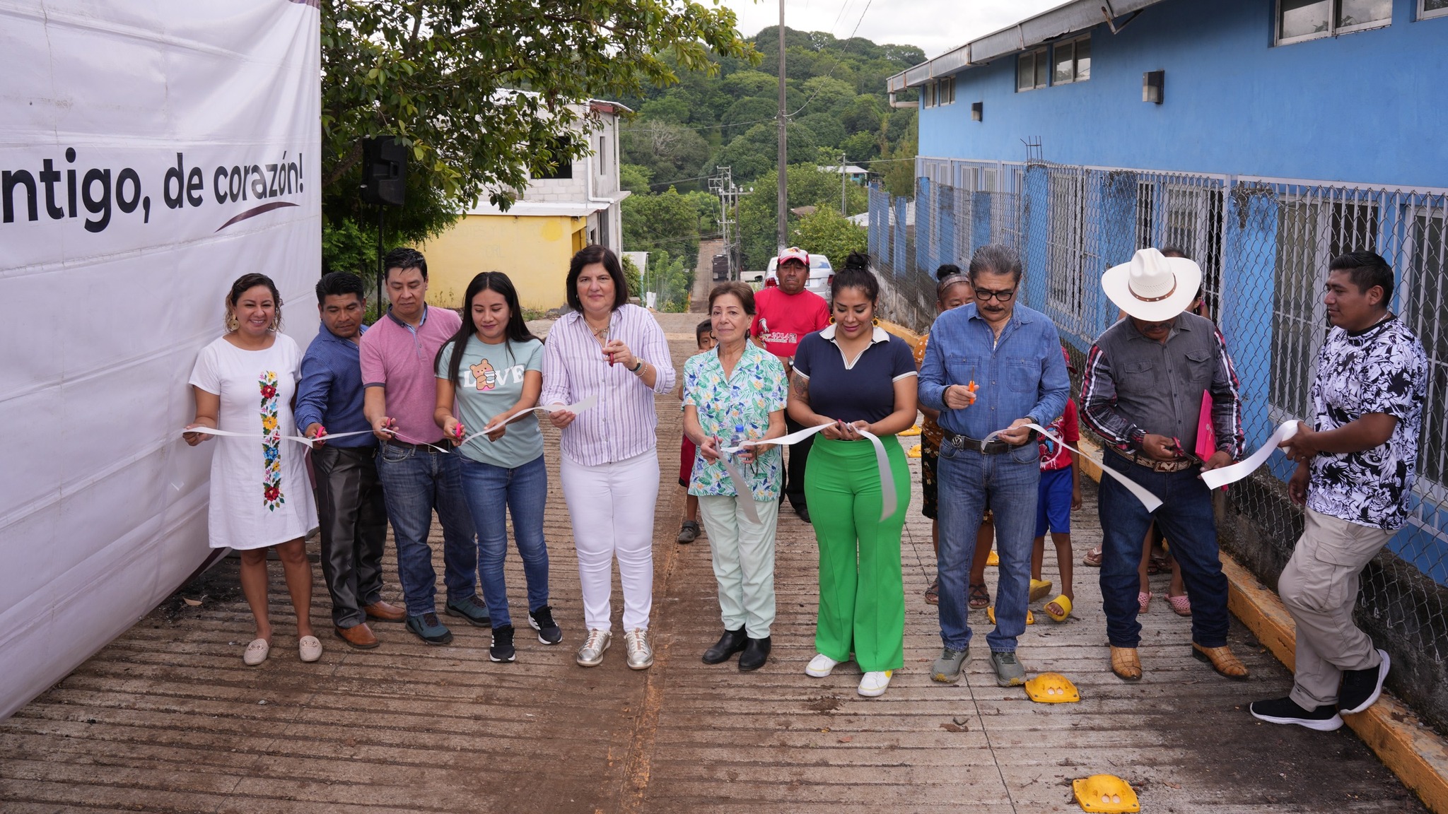 San Andrรฉs Tuxtla, Ver.- Agradeciendo por los compromisos cumplidos, con obras que transforman y generan bienestar, el agente municipal de Cerro de las Iguanas, Juan Chontal Cagal, acompaรฑado de pobladores de dicha localidad, recibieron a la Presidenta Municipal de San Andrรฉs Tuxtla, Marรญa Elena Solana Calzada, para inaugurar junto con ella y sus ediles, la obra de pavimentaciรณn en la calle Independencia.