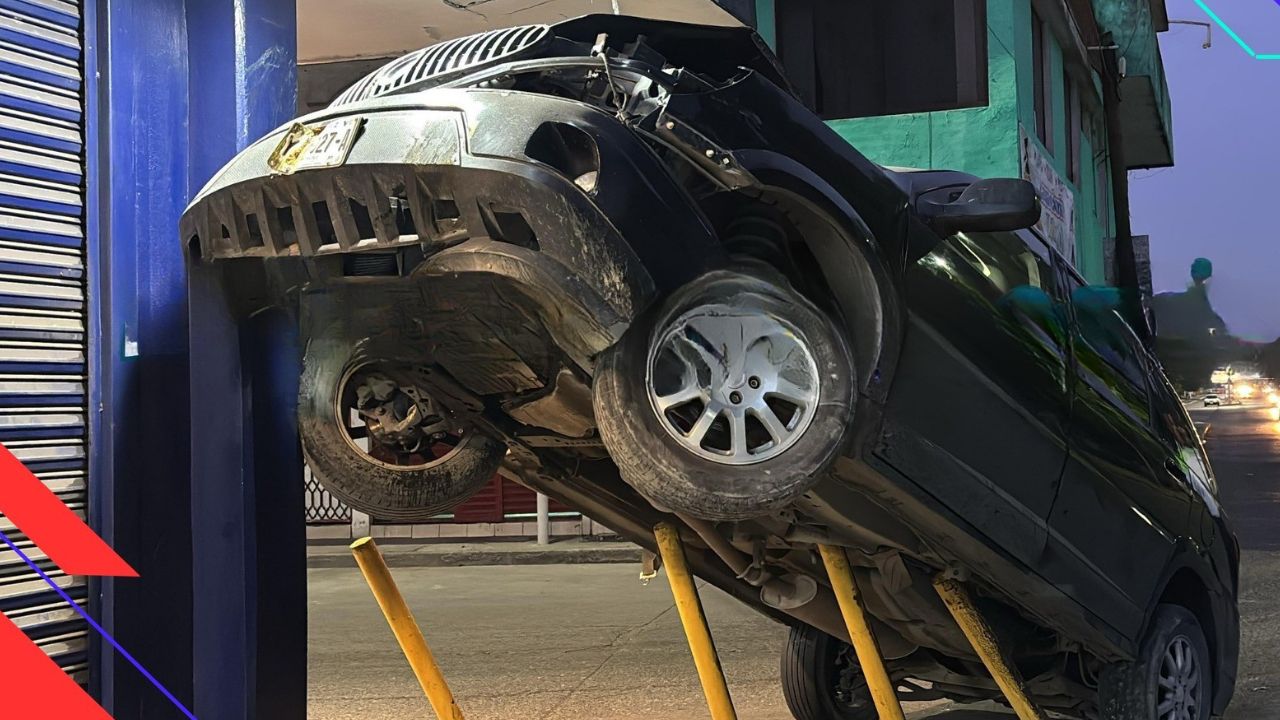 De acuerdo con los reportes preliminares, el conductor de la unidad marca Mercury de color negro, perdió el control y se ¡mp@ct0 contra la entrada de un negocio de motocicletas, en los tubos de protección, en los que quedó montada la unidad.