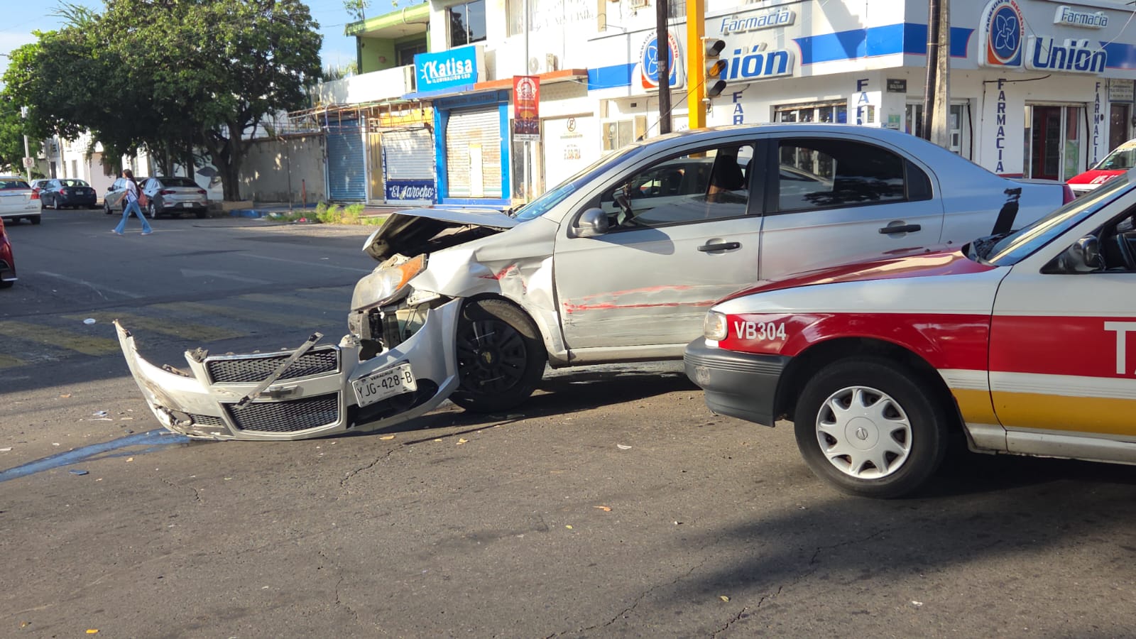 Finalmente, el más llamativo y que dio más complicaciones fue el suscitado en la avenida Simón Bolívar esquina con calle Negrete, el cual involucró a un taxi con el número económico 304 y a una unidad particular Chevrolet tipo Aveo color gris, la que resultó con severas afectaciones en su carrocería.