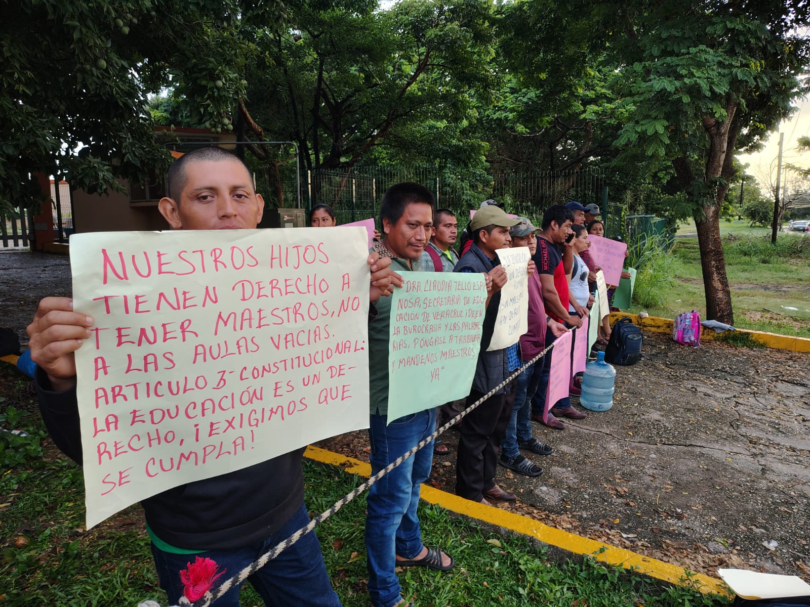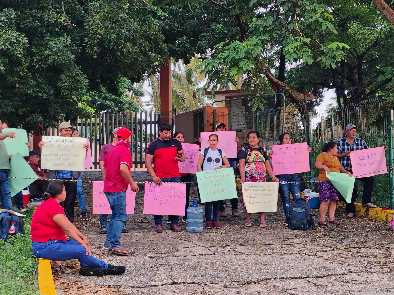 Coatzacoalcos, Ver.-Padres de familia del ejido Nuevo Ixtacomitán perteneciente al municipio de Las Choapas, se manifestaron este lunes afuera de la Subdelegación de la SEV en este puerto, para exigir la asignación inmediata de maestros a la escuela primaria «General Emiliano Zapata», pues desde el inicio del ciclo escolar no se cuenta con personal docente.