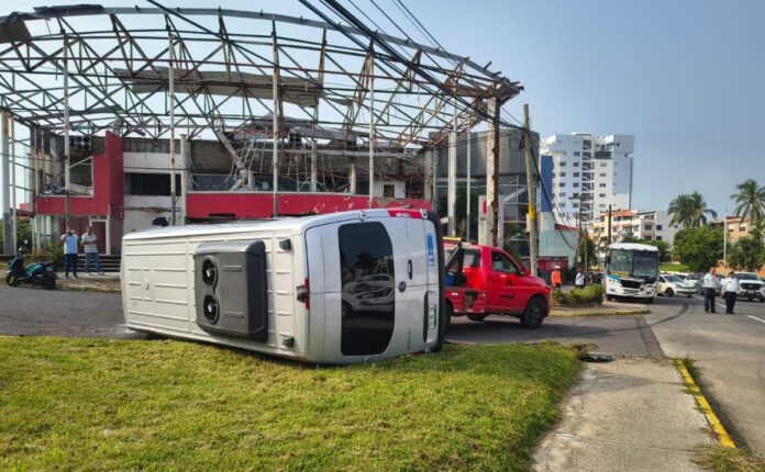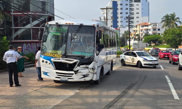 Boca del Río, Ver.– La mañana de este jueves se registró un fuerte accidente vial frente al Hotel Mocambo, en la rotonda de los “Jarochos”, donde un camión urbano de la ruta Boqueño y una camioneta de traslado turístico se vieron involucrados, dejando como saldo siete personas lesionadas y cuantiosos daños materiales.