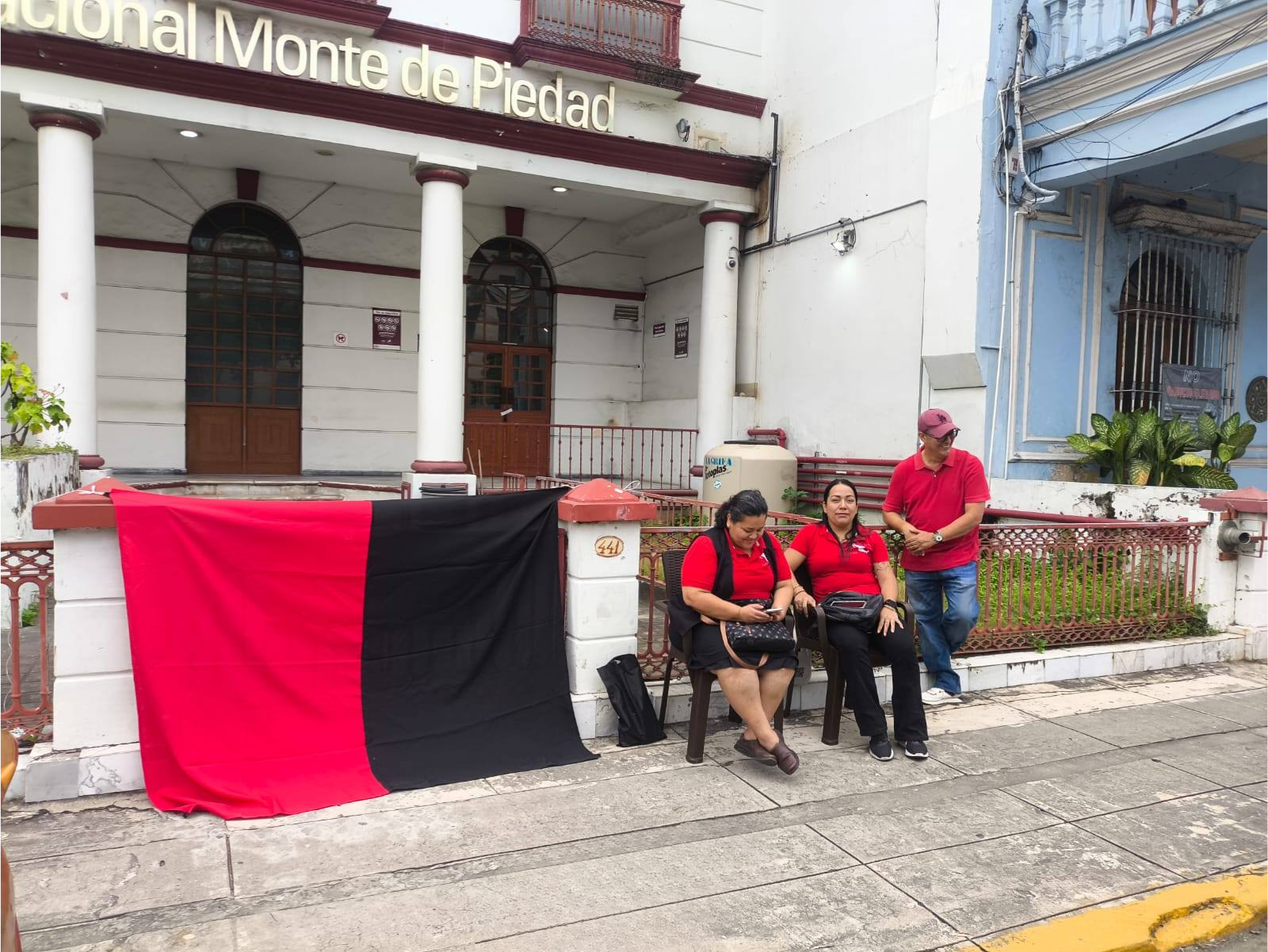 Veracruz, Ver., 1 de octubre 2025.- Este miércoles primero de octubre, trabajadores del Nacional Monte de Piedad de todo el país se encuentran en huelga, pues acusan incumplimiento del contrato colectivo de trabajo por parte de la empresa.