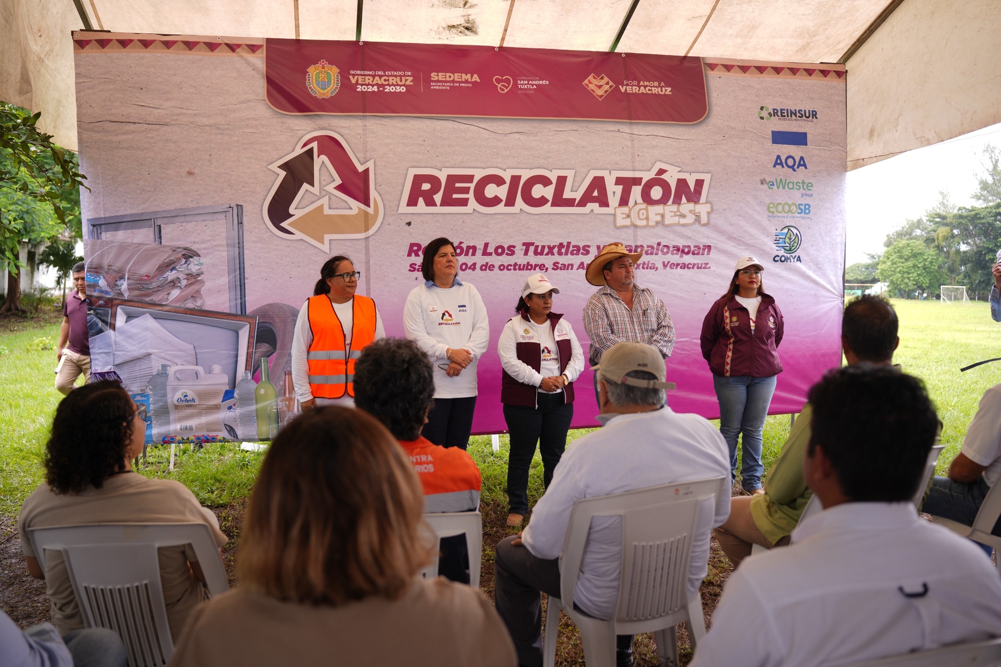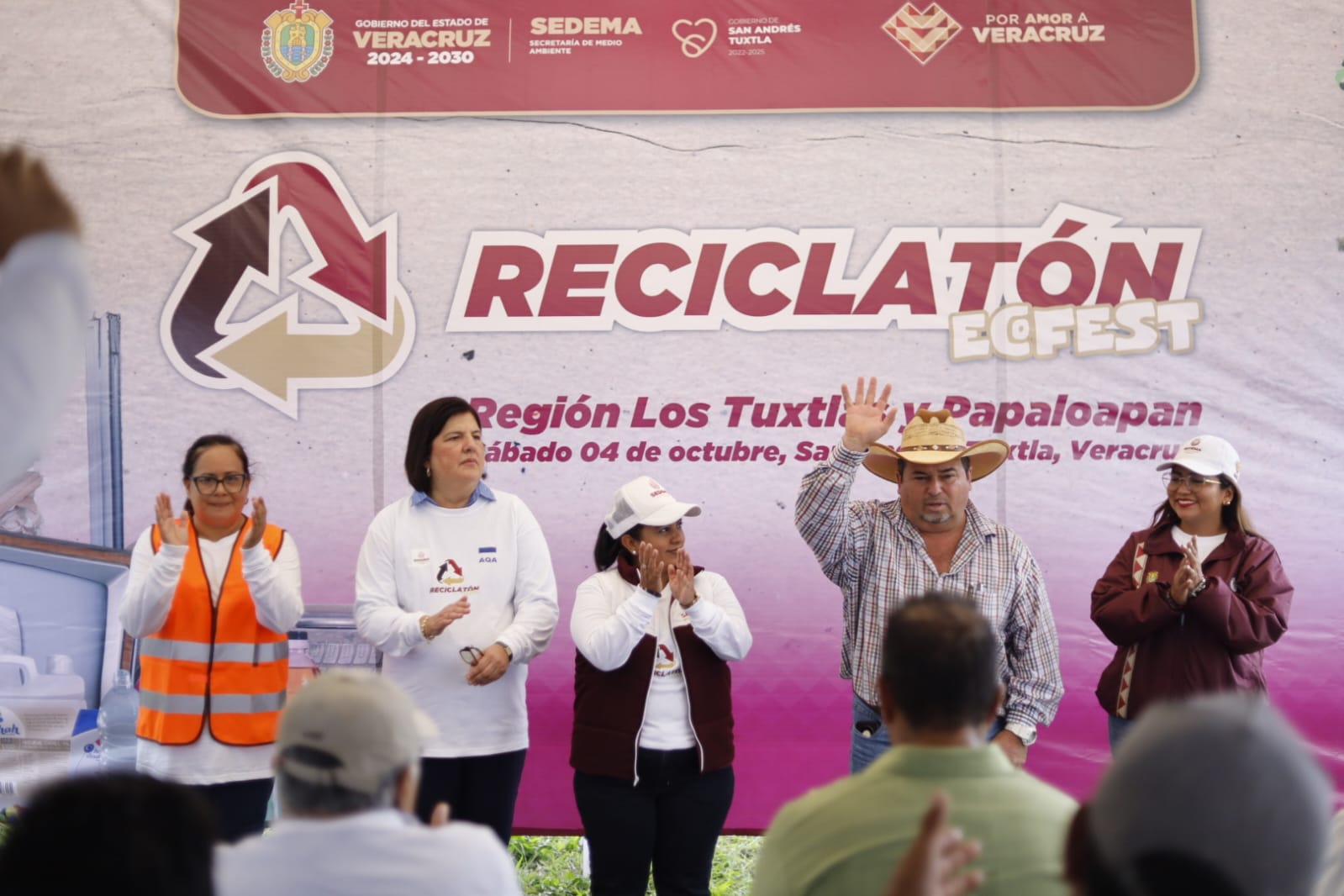 San Andrés Tuxtla, Ver.- Con el objetivo de fomentar una cultura de gestión responsable de residuos y promover la economía circular, San Andrés Tuxtla fue la sede del Reciclatón Ecofest 2025, evento que reunió a autoridades estatales, municipales y ciudadanos comprometidos con el cuidado del medio ambiente, presidiendo el arranque de este evento la alcaldesa de San Andrés Tuxtla, María Elena Solana Calzada anfitriona de estas jornadas de reciclaje de las que el municipio fue sede.