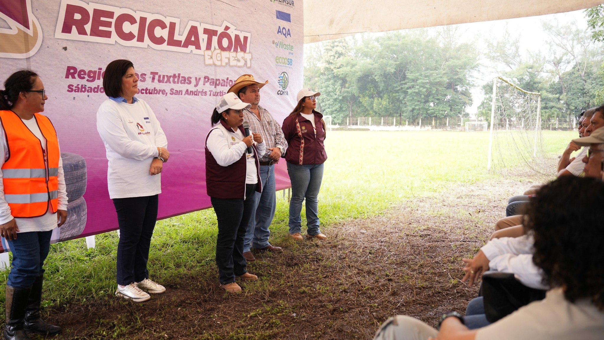 La secretaria de Medio Ambiente en el Estado agradeció a su equipo de trabajo, a la alcaldesa de San Andrés Tuxtla, señalando que esta campaña Reciclatón ECOFES 2025 sirve como una parte aguas de lo que tenemos que hacer como responsabilidad social en cuestión a la educación ambiental.