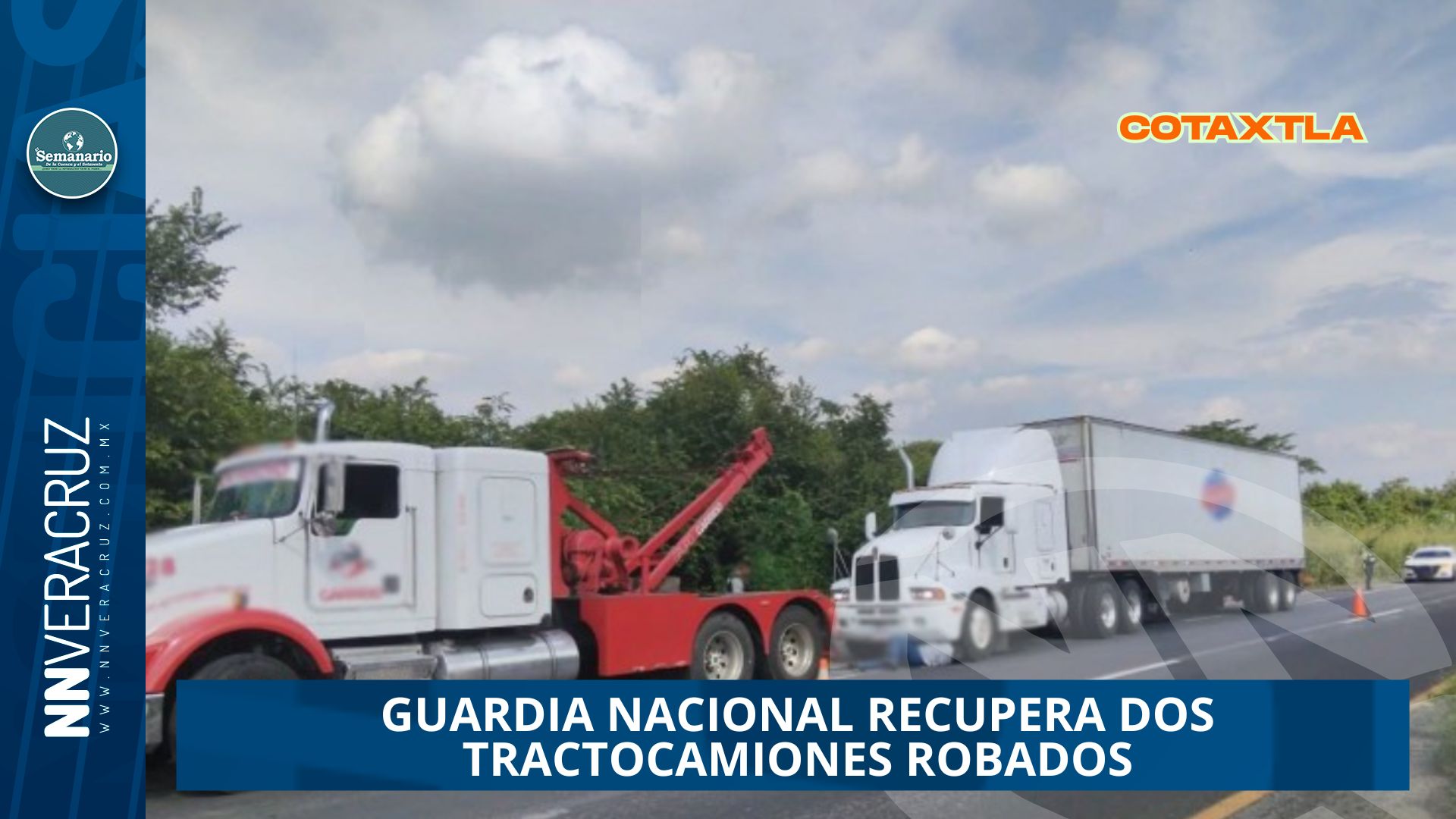 GUARDIA NACIONAL RECUPERA DOS TRACTOCAMIONES ROBADOS COTAXTLA DURANTE OPERATIVO «PLAN CERO ROBOS»