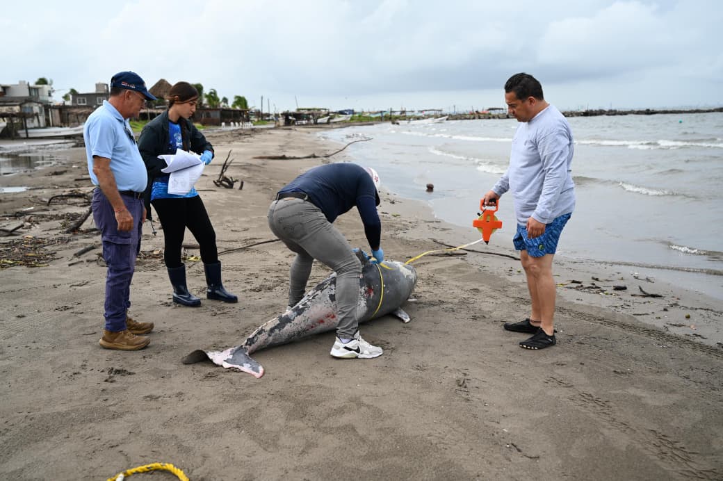 Al sitio acudió a personal de la Comisión Nacional de Áreas Naturales Protegidas (CONAMP), quienes tomaron las muestras iniciales para conocer las características de la especie y la posible causa de muerte; posteriormente con ayuda de los pescadores levantaron el cuerpo y fue trasladado a otro sitio.