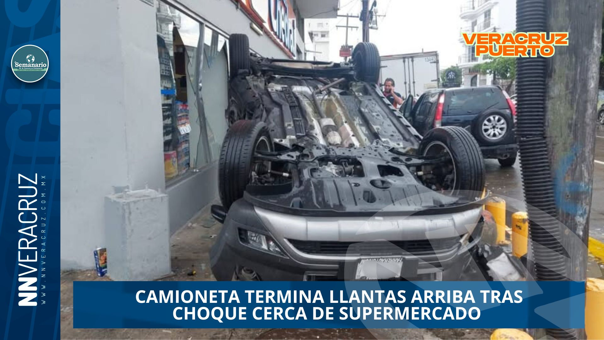CAMIONETA TERMINA LLANTAS ARRIBA TRAS CHOQUE CERCA DE SUPERMERCADO EN VERACRUZ