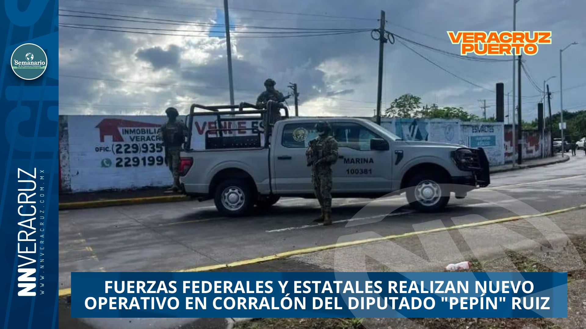 Veracruz, Ver., 22 de octubre de 2025.– Elementos de fuerzas federales y estatales efectuaron nuevamente un operativo de revisión en el corralón de vehículos propiedad del diputado José “Pepín” Ruíz Carmona, ubicado en la Unidad Habitacional El Coyol.