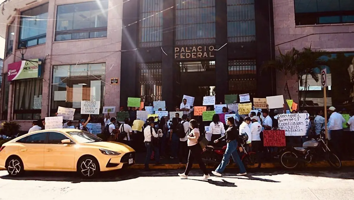 Xalapa, Ver. – Trabajadores de la Sección Regional de Correos de México en Xalapa se manifestaron este martes frente a las oficinas del Palacio Federal para exigir mejores condiciones laborales, denunciando que perciben salarios por debajo del mínimo y que deben cubrir con recursos propios el mantenimiento de las unidades de trabajo.