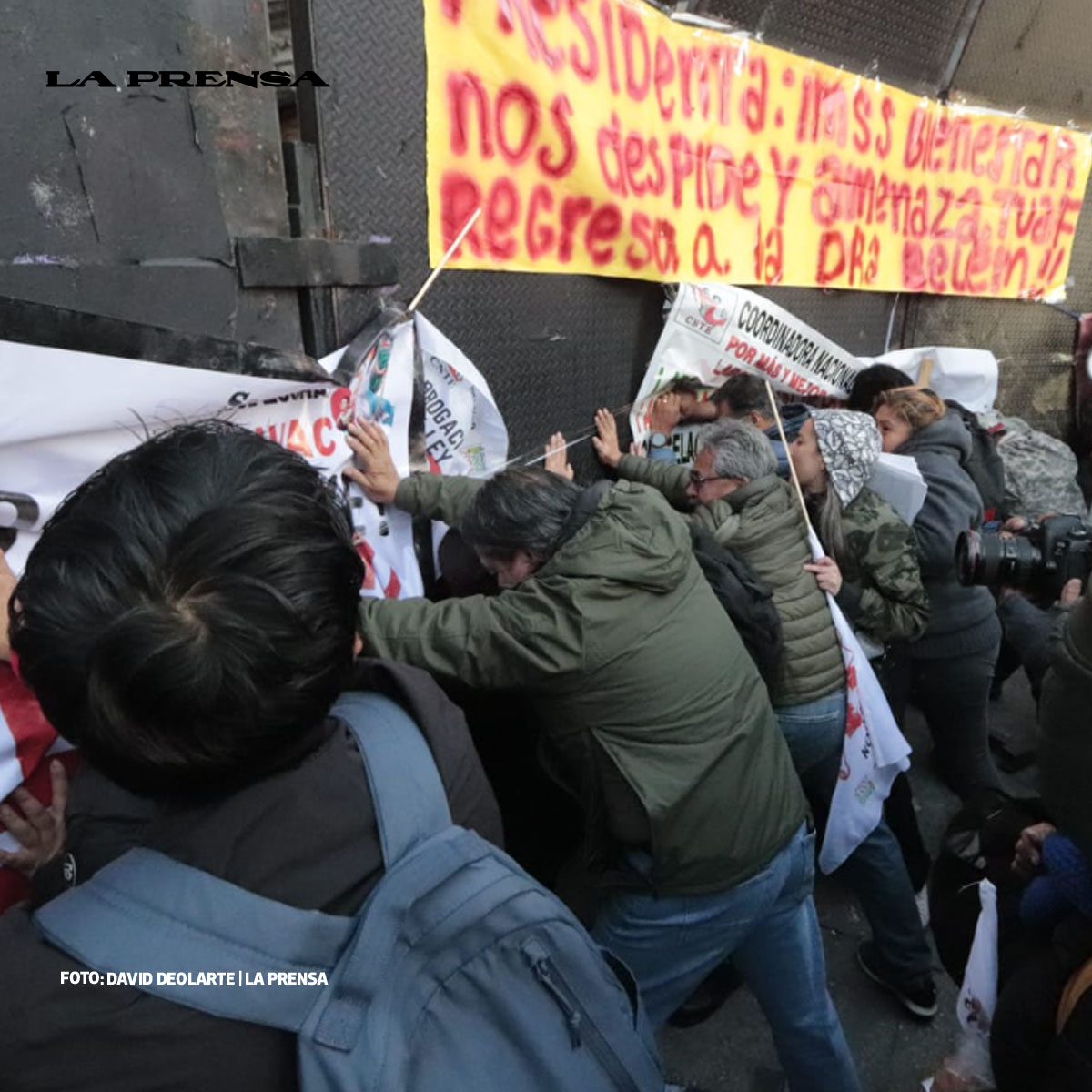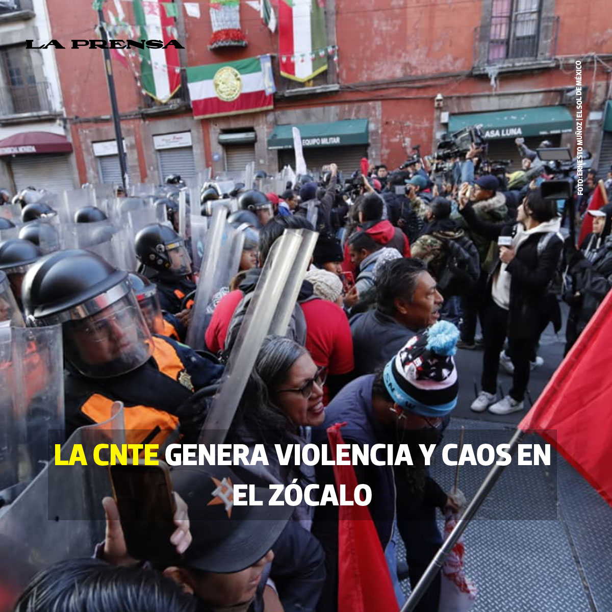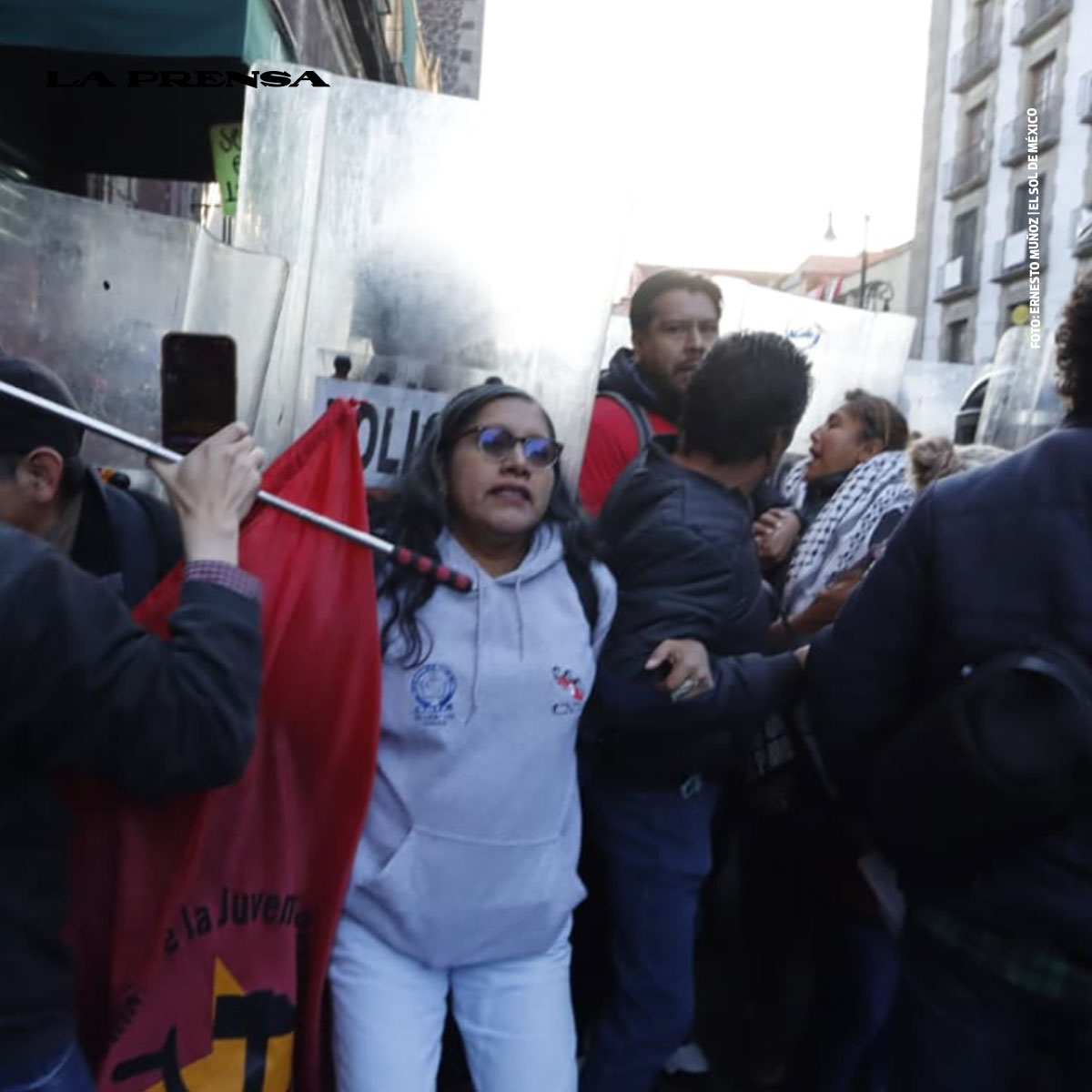🚨🗣️ Entre gritos, empujones y vallas metálicas, integrantes de la CNTE desataron momentos de violencia tras intentar derrumbar el cerco seguridad que la SSC había implementado para resguardar Palacio Nacional.