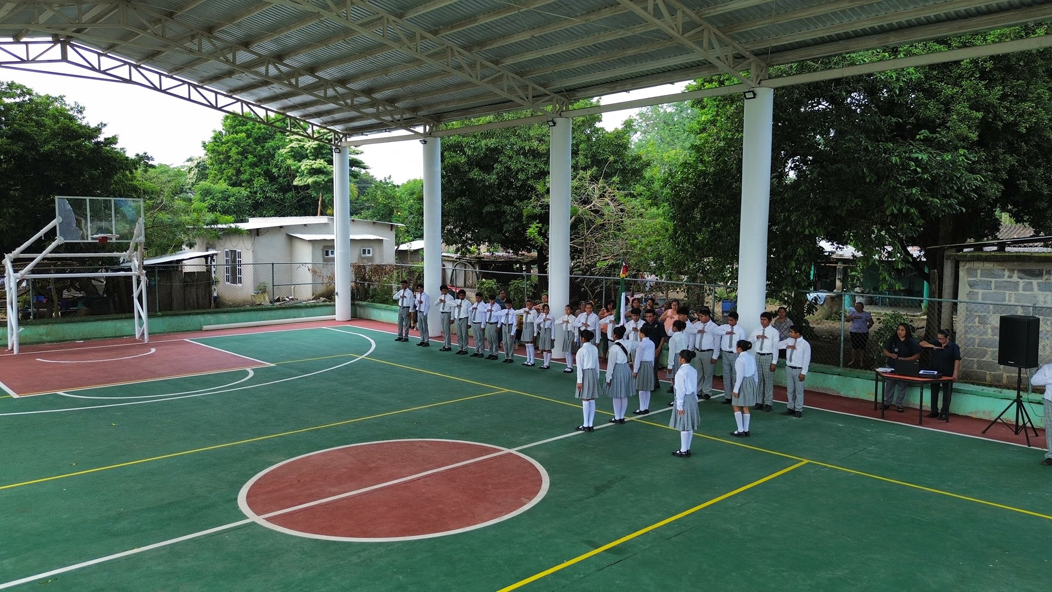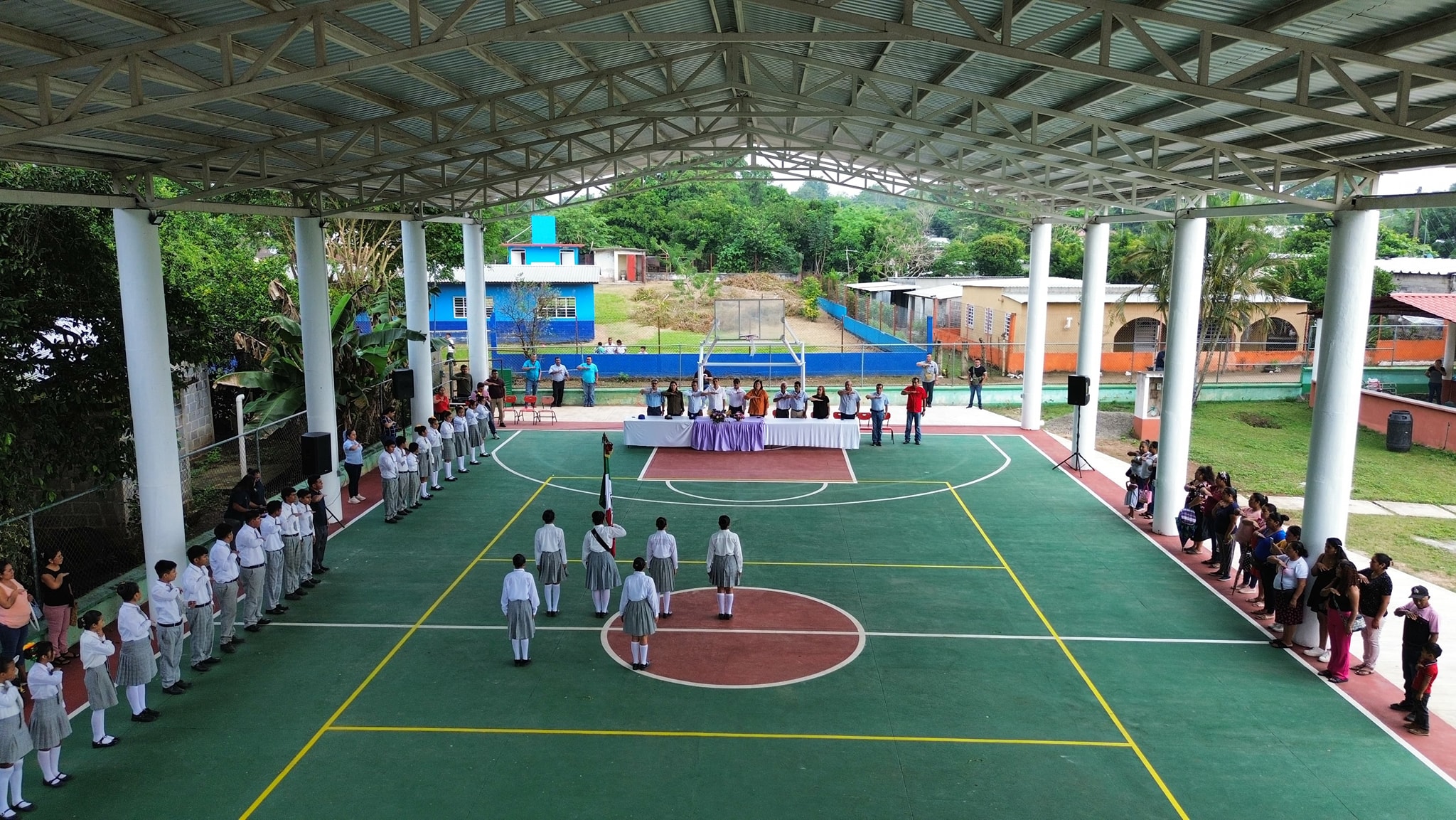 El director de la Telesecundaria «Manuel Ávila Camacho», destacó que durante décadas, los maestros trabajaron bajo las inclemencias del tiempo, pero gracias a esta obra, ahora gozarán de mejores condiciones para la realización de sus actividades y todos los eventos culturales y deportivos que en adelante se realizarán en este lugar con comodidad y seguridad. En este sentido extendió el profesor Carlos Antele Moreno, extendió su agradecimiento al presidente del comité de la obra, el ciudadano José Antonio Torres Martínez y al profesor Edgardo Cecilio Ramírez Sosa, regidor séptimo del ayuntamiento, por su apoyo en la gestión y trámites para esta obra.