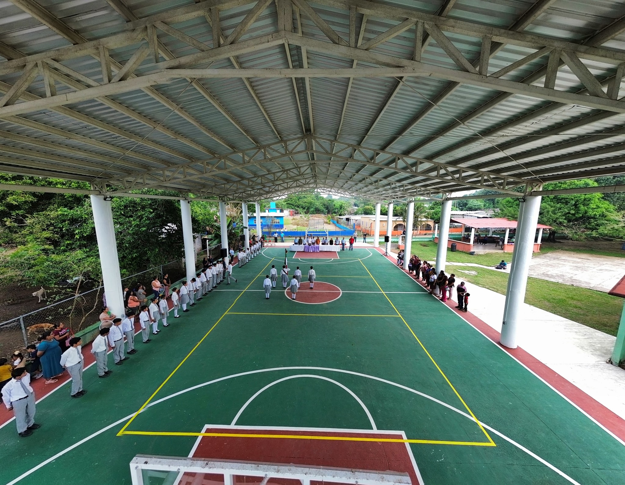 San Andrés Tuxtla, Ver.- “Es un honor dirigir estas palabras en la inauguración de una obra anhelada por décadas, mi agradecimiento a las autoridades municipales, ejidales, padres de familia, maestros y alumnos por esta obra tan anhelada que beneficiará al alumnado y a futuras generaciones”, expresó el profesor Carlos Antele Moreno, Director de la Telesecundaria «Manuel Ávila Camacho» de Río Tuxtla, en su discurso de bienvenida y agradecimiento dirigido a la Presidenta Municipal de San Andrés Tuxtla, la Dra Maria Elena Solana Calzada – Dra Remedios quien acudió acompañada de regidores de su cabildo, a inaugurar la obra de techado en la cancha de usos múltiples de este plantel educativo.