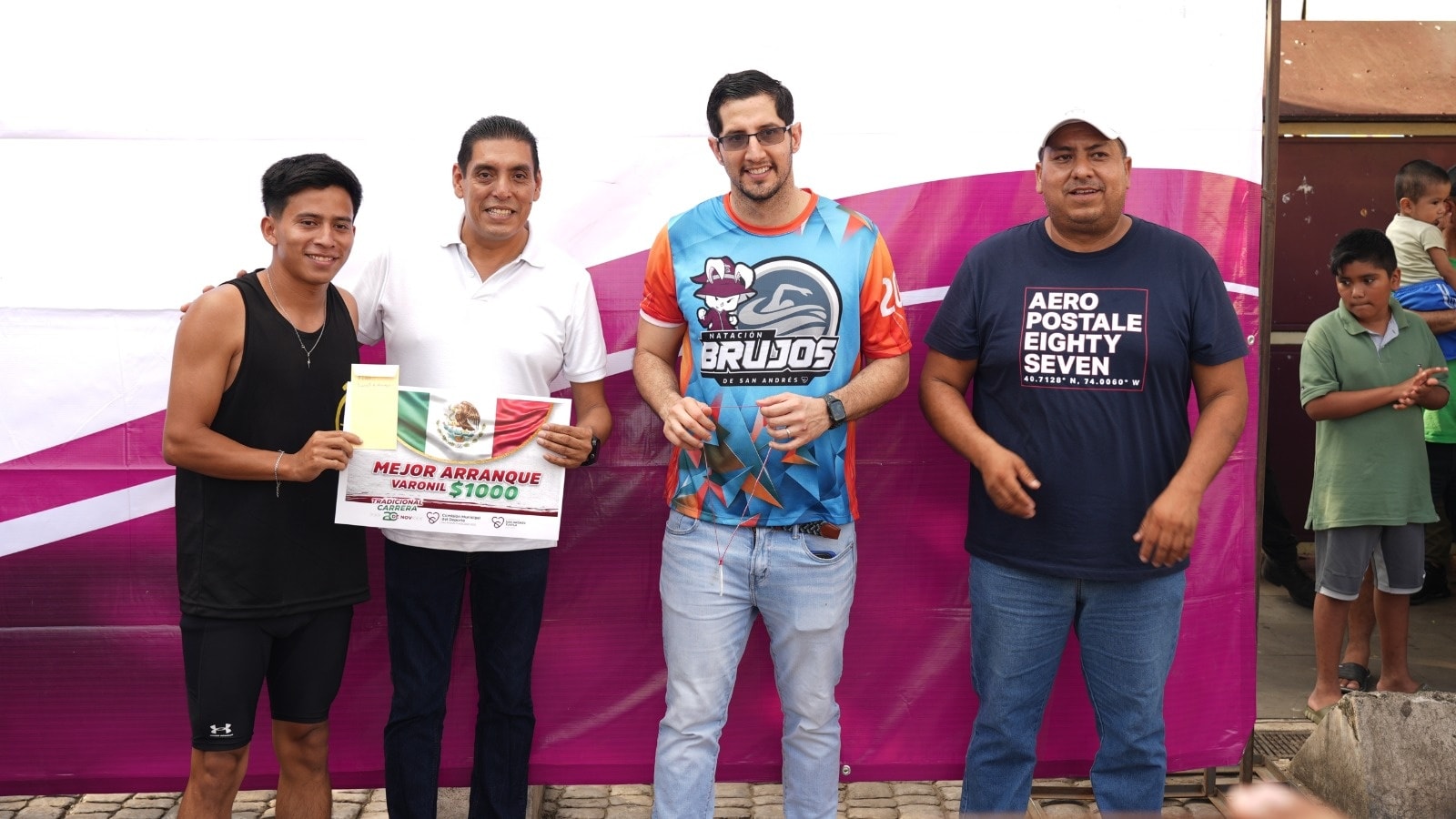 Llegado el momento, partiendo desde el vecino municipio de Catemaco dio inicio la competencia tradicional en el ramo varonil en la que los resultados finales otorgaron el reconocimiento e incientivo por mejor arranque, por cuarto aรฑo consecutivo a Daniel Morgado, premiado con $1000 pesos y medalla.