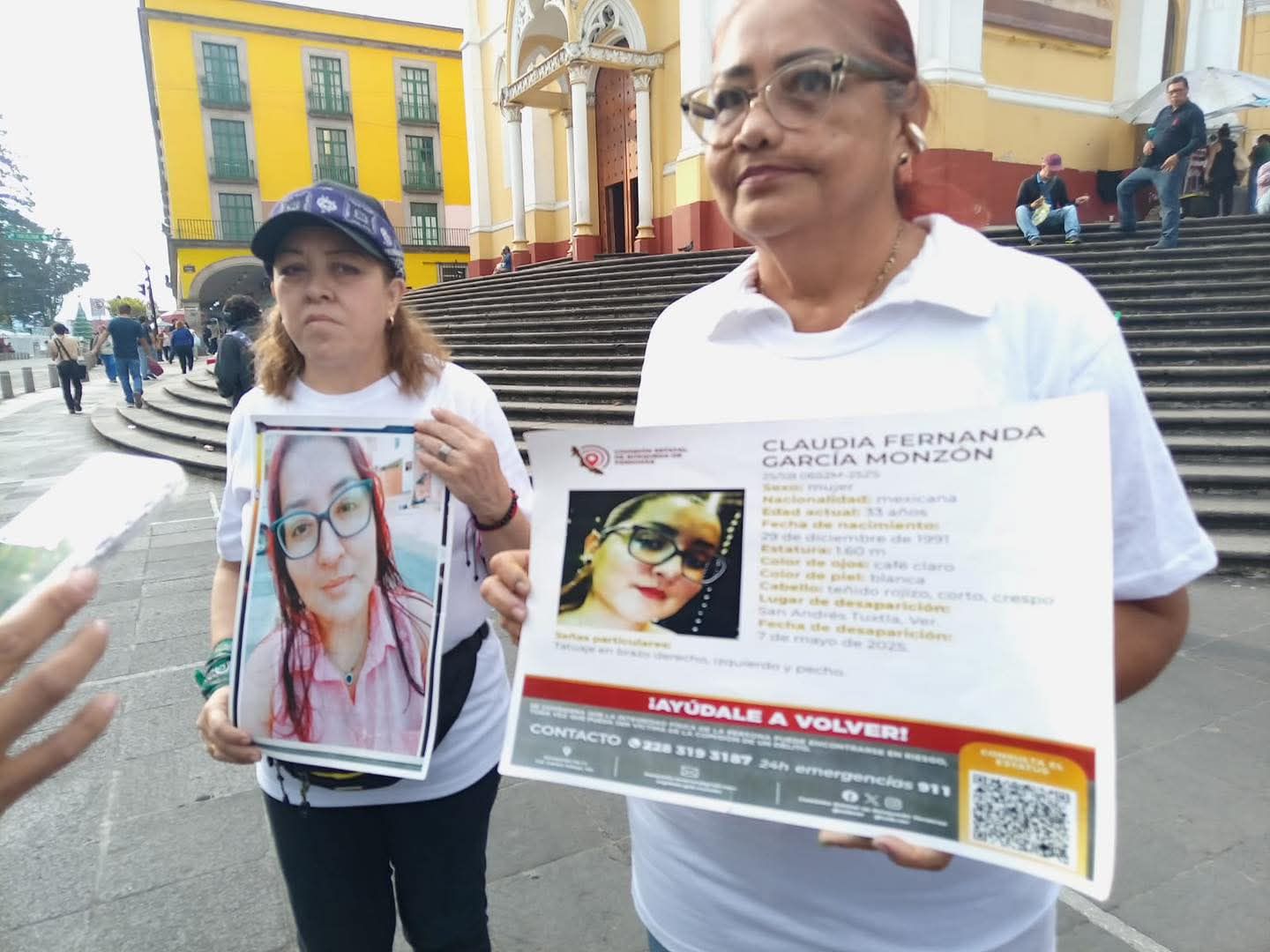 En el marco del Día Internacional de la Eliminación de la Violencia contra las Mujeres, la señora Claudia Elvira Monzón Ortiz se presentó este martes en Plaza Lerdo para pedir apoyo ciudadano en la búsqueda de su hija, Claudia Fernanda García Monzón, desaparecida el 8 de mayo de 2025 en el municipio de San Andrés Tuxtla, Veracruz.