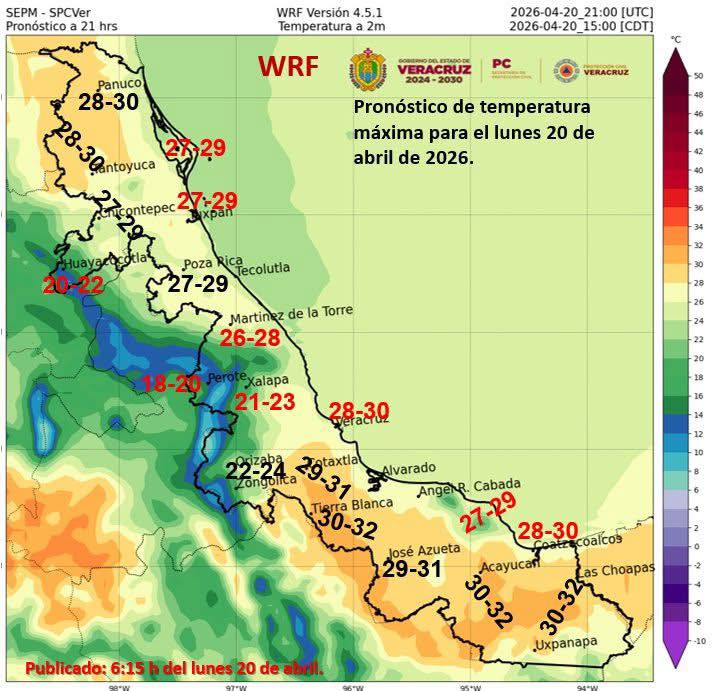 Amigas y amigos, hoy se prevé ambiente templado a relativamente caluroso al mediodía en el estado de Veracruz.