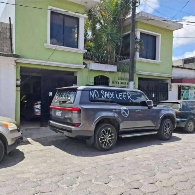 A un conductor se le hizo fácil estacionarse tapando una cochera en el municipio de Pedro Escobedo y a la hora que iban a salir con su auto los propietarios del domicilio, se toparon con una camioneta tapando su salida, por lo que decidieron dejarle un recuerdo de educación vial y lectora.